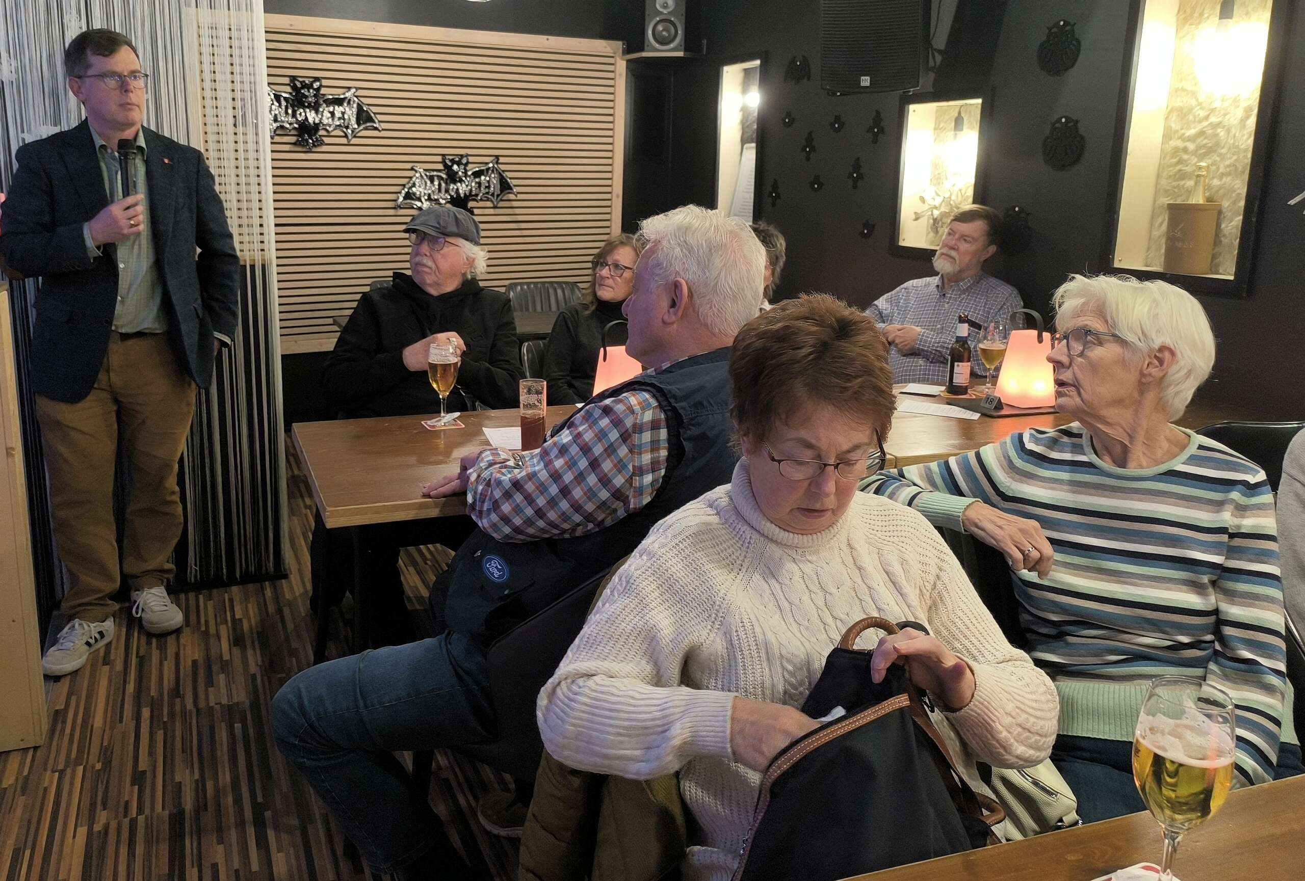 Das Wetter war perfekt, trocken und nicht zu kalt. Nur, die Vereinsgaststätte konnte den Biergarten nicht öffnen – coronabedingt. So traf man sich im für die Anzahl der Besucher schon fast zu kleinen Salon des Lokals. Ein paar eilig herbeigeschaffte Stühle und die Öffnung zum Thekenbereich ermöglichten dann doch allen, an der Diskussion teilzunehmen.