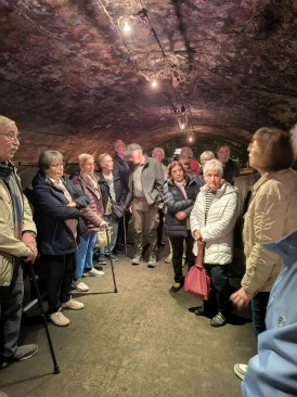 Am Sonntag ging es dann nach Abreise aus dem Hotel in das wunderschöne Bernkastel-Kues, wo bei einer Stadtführung in zwei Gruppen die Geschichte des Doppelortes an der Mosel deutlich wurde. Und auch der Kampf mit den viel zu häufig eintretenden Hochwassern, von denen der Ort fast regelmäßig heimgesucht wird. Am höchsten war es 1784, wie es Marken an einem Haus am Marktplatz zeigen, aber auch 2021 stand das Wasser wieder meterhoch in den Straßen und Häusern. Beeindruckend das kleine Fachwerkhaus am Markt, aufgebaut wie das Bügeleisen-Haus in Hattingen., d.h., oben breit und unten ganz schmal.